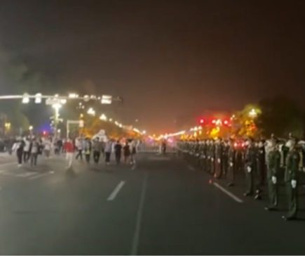 Beijing is not quiet at the moment. The video, posted by Twitter account Wanjun Xie, shows a large number of policemen in uniform standing at the Beijing Exhibition Center. It’s not clear why they are there.